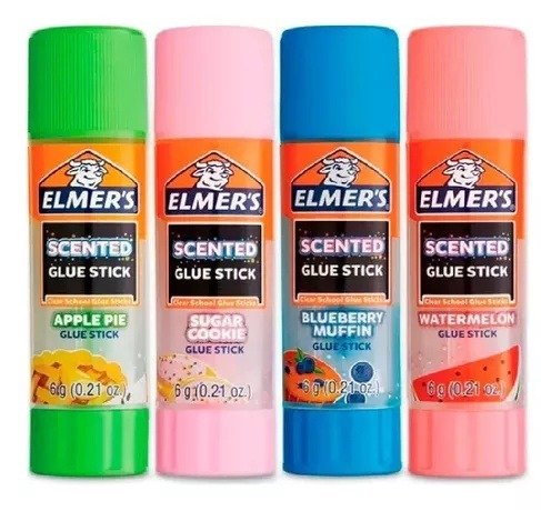 *Pegamento en barra transparente con aroma a sandía, arándano, azúcar y manzana.